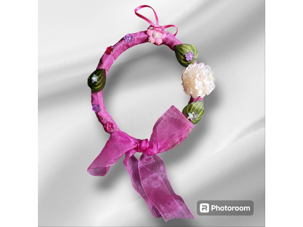zdobení: volán/stuha/umělé květy/ dřevo